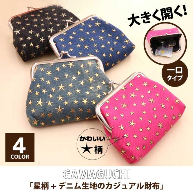 デニムスター がま口財布 星柄 デニム ミニポーチ がま口 コインケース 送料無料 クリックポスト