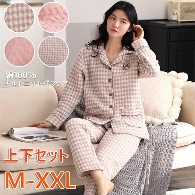 レディース 冬 パジャマ 上下セット 長袖 綿 ルームウェア 部屋着 寝巻き キルトニット キルティング オーガニックコットン 秋 前開き 母の日 誕生日 高級