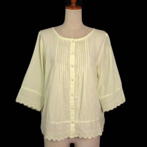 【中古】スタディオクリップ Studio Clip ブラウス ノーカラー レース 刺繍 黄 イエロー レディース