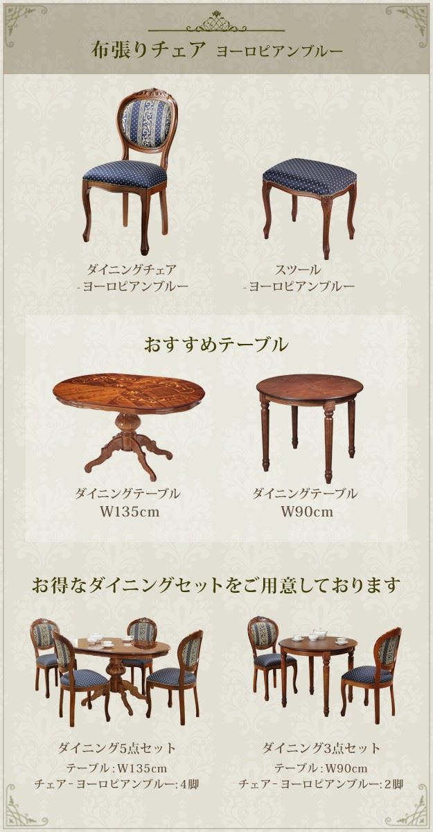 イタリア 家具 ヴェローナクラシック ダイニング3点セット テーブル幅90cm チェア-ヨーロピアンブルー2脚 アンティーク調 イタリア製