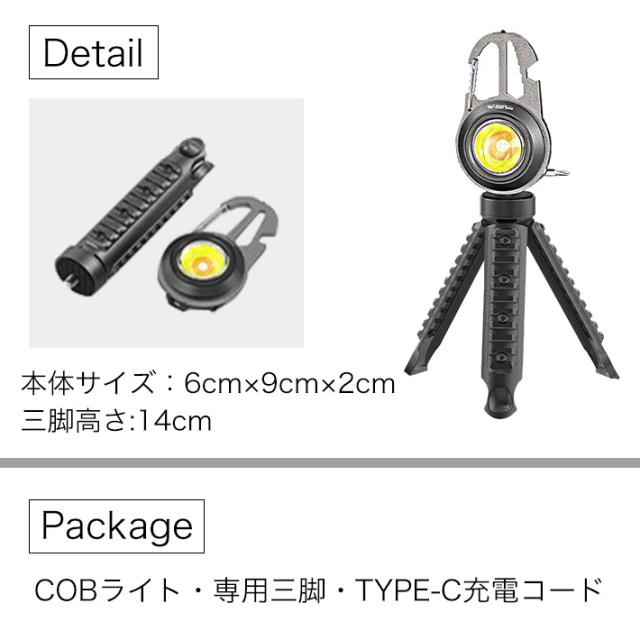 パッケージ内容:COBライト、専用三脚、TYPE-C充電コード