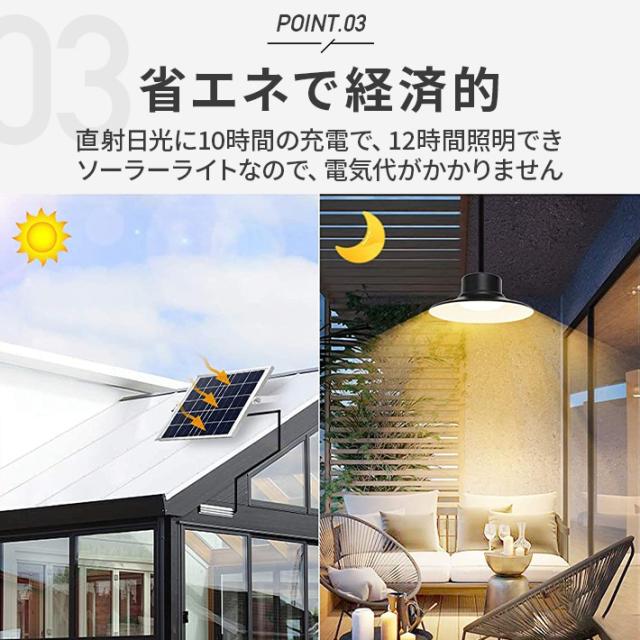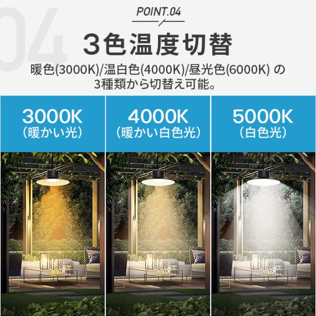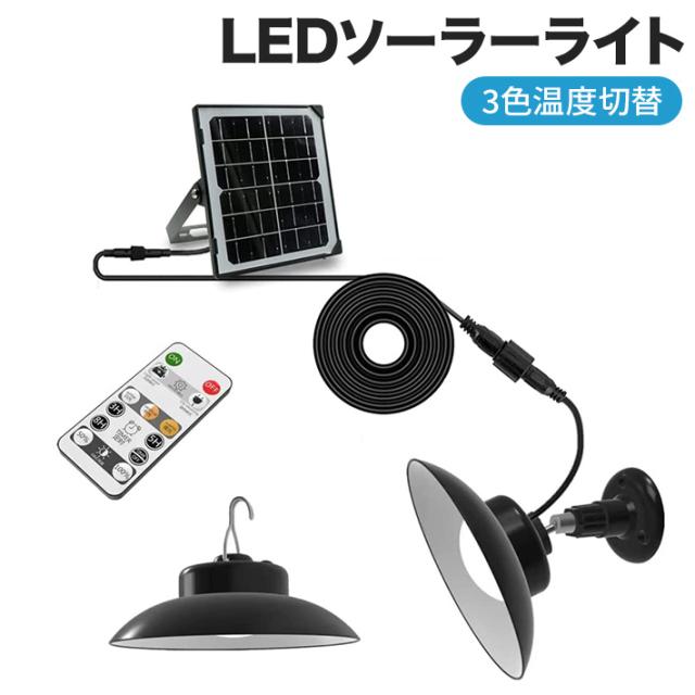 LEDソーラーライト 3色温度切替 屋外 センサーライト 分離型 自動点灯 自動消灯 5m延長ケーブル リモコン付 定時機能 2段階輝度調整 IP65 防水 ペンダントライト