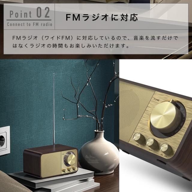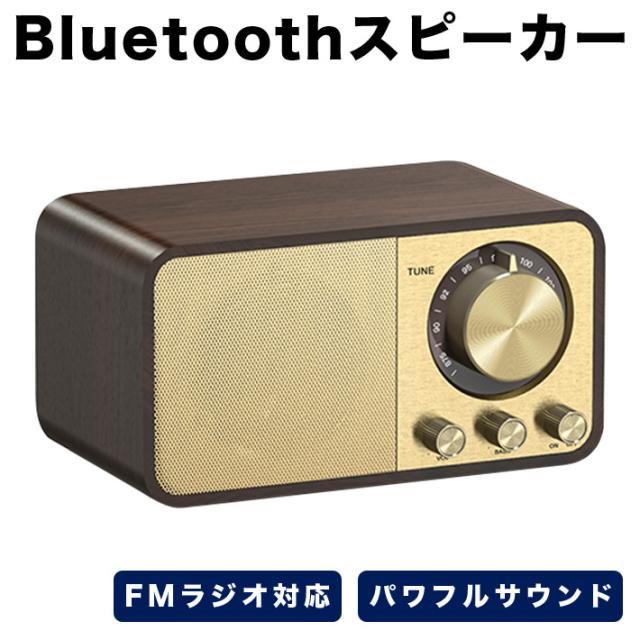 最新版 木製 FMラジオ対応 Bluetooth5.0 無線 スピーカー AUX-IN対応 TFカード対応 電話通話可能 マイク内蔵 パワフルなサウンド 最大25時間連続再生