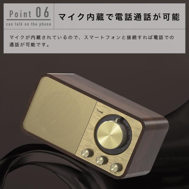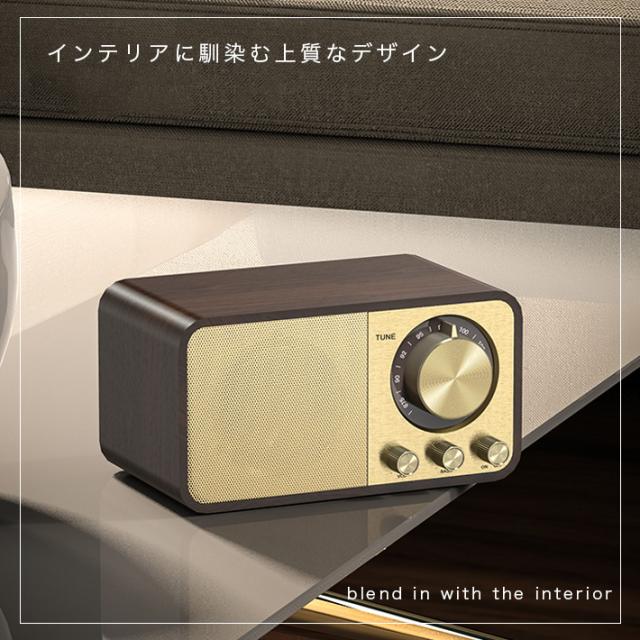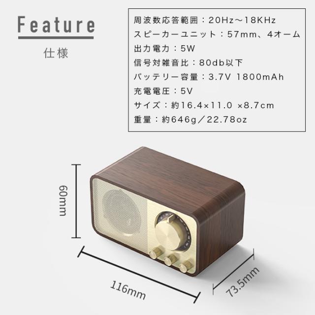 最新版 木製 FMラジオ対応 Bluetooth5.0 無線 スピーカー AUX-IN対応 TFカード対応 電話通話可能 マイク内蔵 内蔵バッテリー