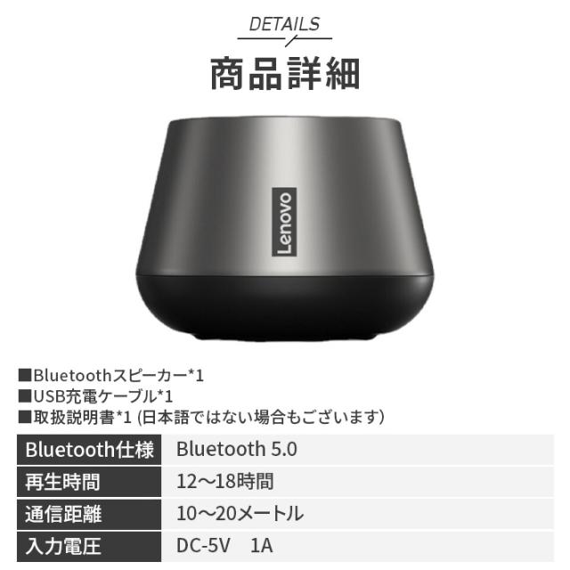 Lenovo Bluetooth スピーカー ブルートゥーススピーカー 充電式 ワイヤレススピーカー IPX5 防水 小型スピーカー