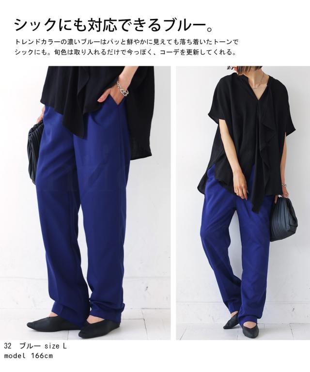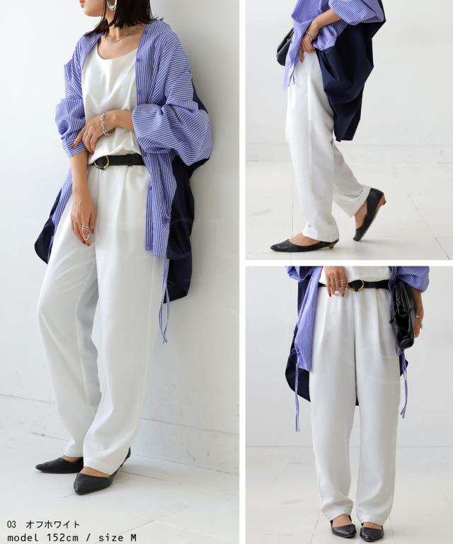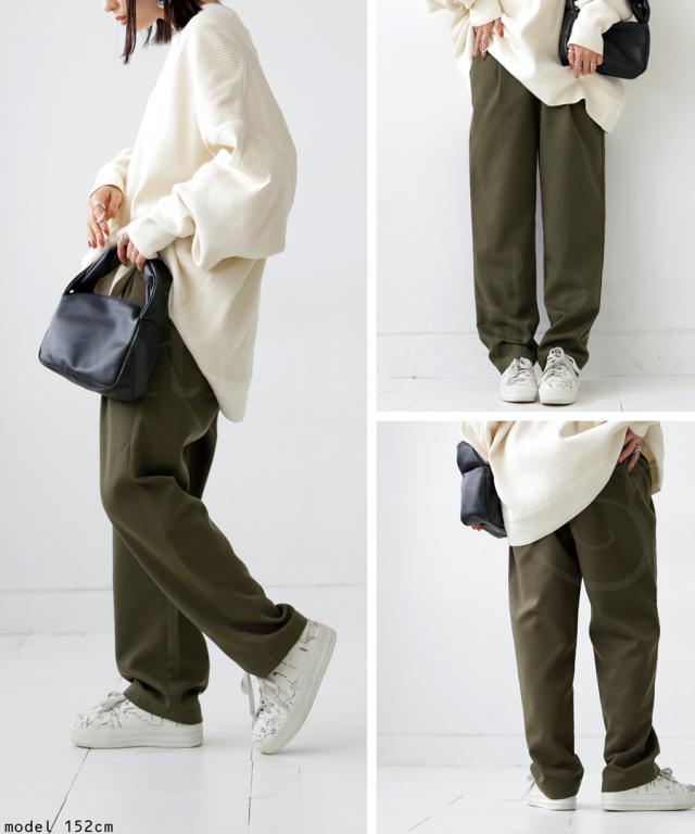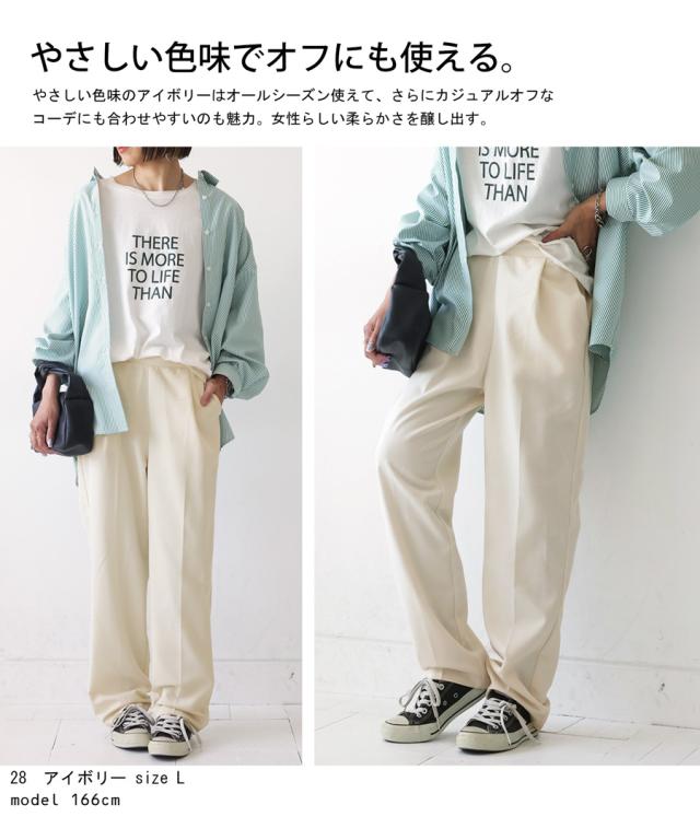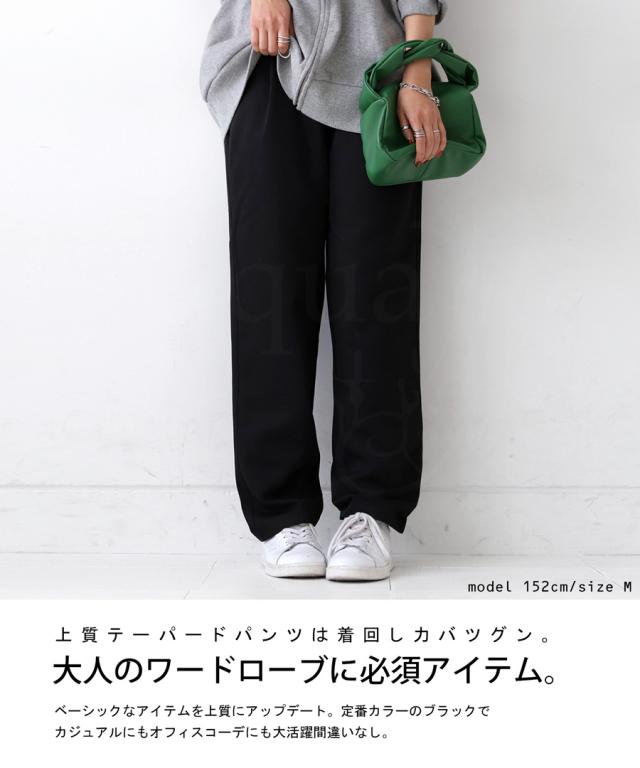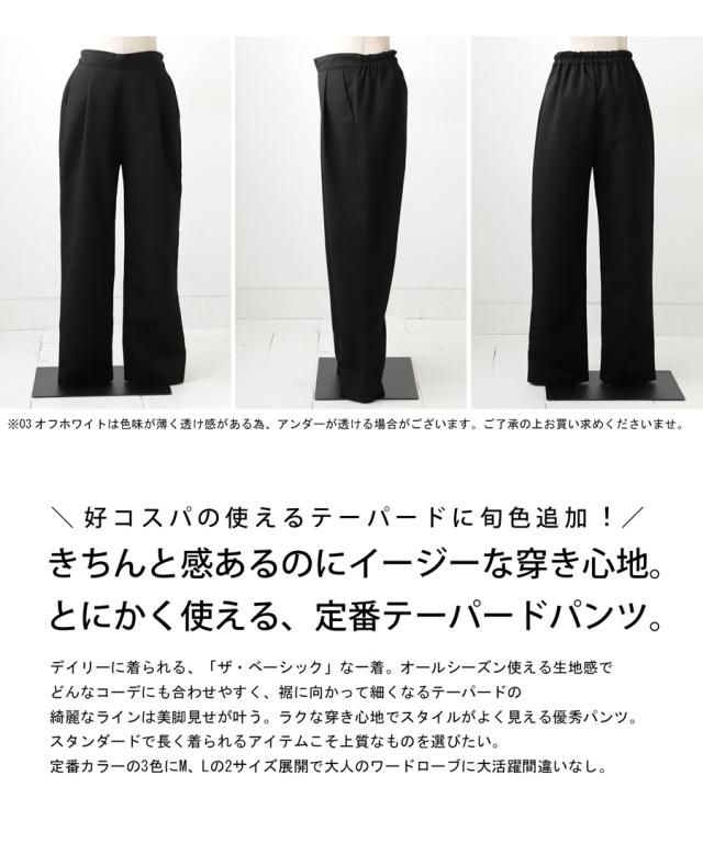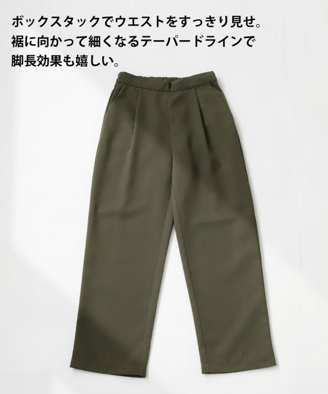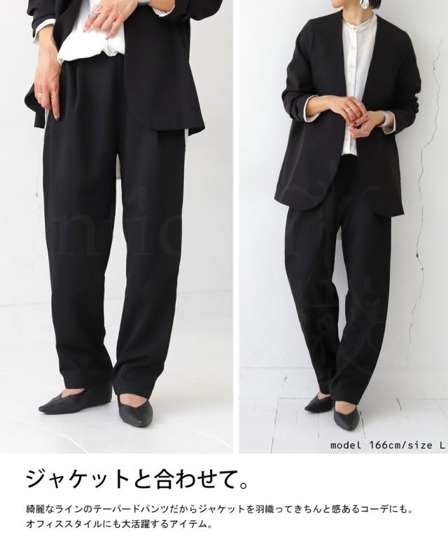 la-00022 きれいめ シンプル タックパンツ タック テーパード 長ズボン スラックス ゆったり 前フラット 後ろゴム 高級感 美脚 上品 通勤 オフィス サイズ展開 オールシーズン