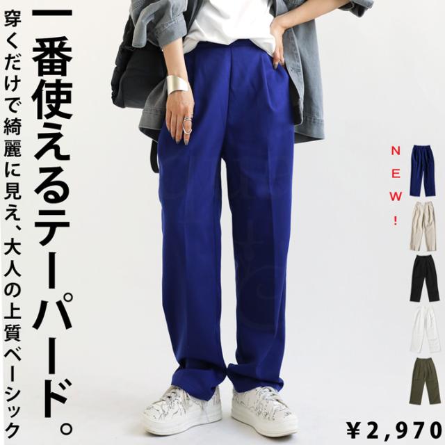 新年特別!半額クーポン対象 9日20時〜14日10時 テーパードパンツ パンツ レディース ボトムス ロング 無地・(100)メール便可