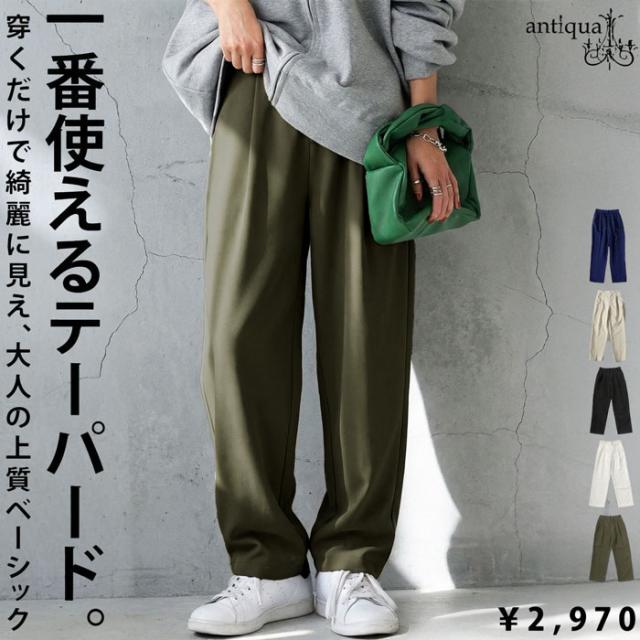 【検索ワード】テーパードパンツ パンツ レディース ボトムス ロング 無地 きれいめ シンプル タックパンツ タック テーパード 長ズボン スラックス ゆったり 前フラット 後ろゴム 高級感 美脚 上品 通勤 オフィス サイズ展開 M L antiqua アンティカ 大人 おしゃれ 10代 20代 30代 40代 50代 60代 春 夏 秋 冬 オールシーズン お洒落 カジュアル かわいい かっこいい あんてぃか
