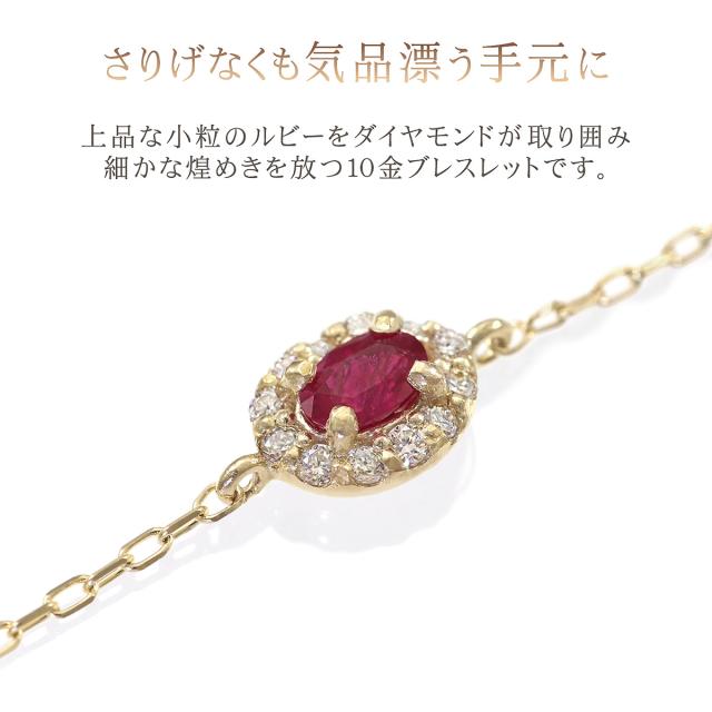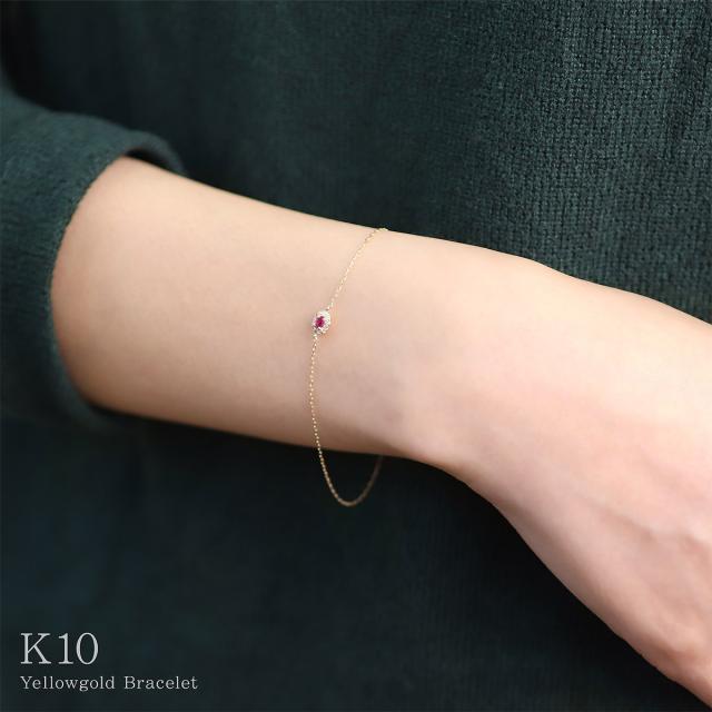 ブレスレット レディース ダイヤモンド ルビー 10金 イエローゴールド 華奢 シンプル 宝石 10K K10 ジュエリー プレゼント 記念日 誕生日 おしゃれ 可愛い 小ぶり 小さめ 細め 細い 7月 4月 誕生石 本物 かわいい 赤 レッド 女性 彼女 嫁 友達 娘 母の日 ギフト 2026