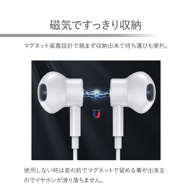 | イヤホン背面のマグネットでからまず収納可能 | |