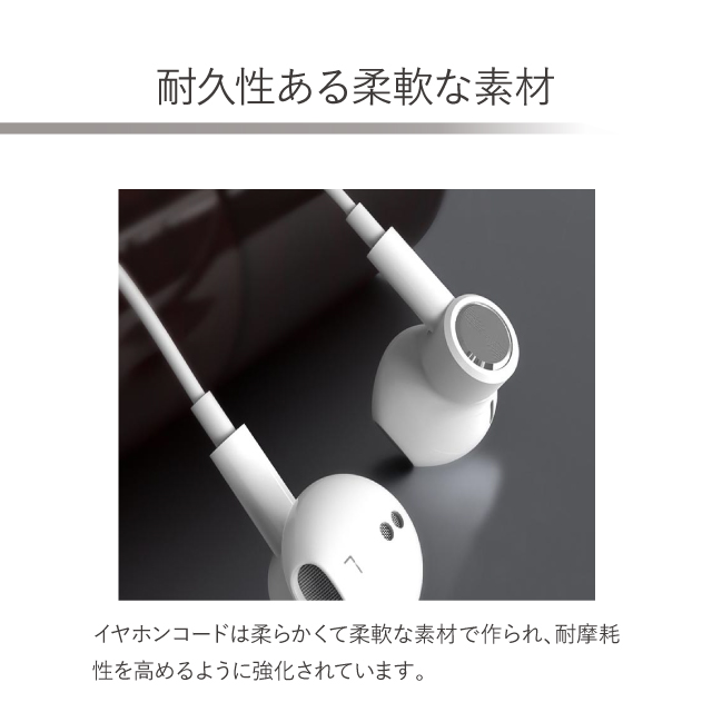 | イヤホンコードは耐久性能ある柔軟な素材 | |