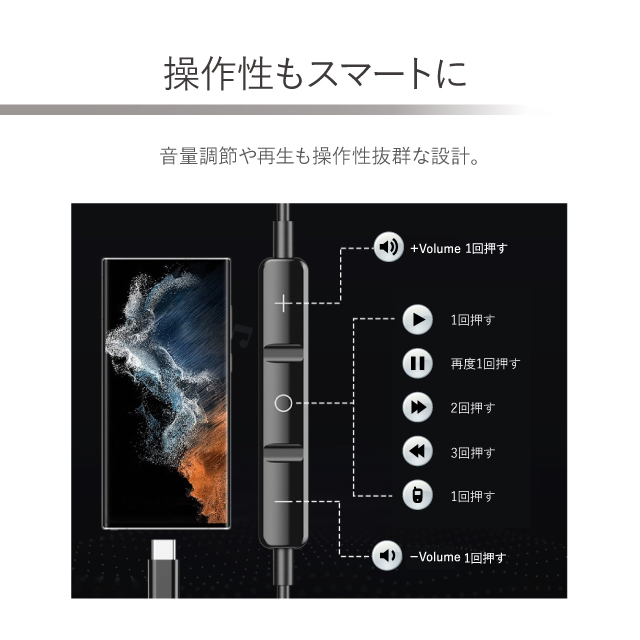 | 注意事項 | こちらの商品はTYPE-Cポートに接続して使用するイヤホンになります。イヤホンジャックを使用するイヤホンは こちらから お買い求めください。 |