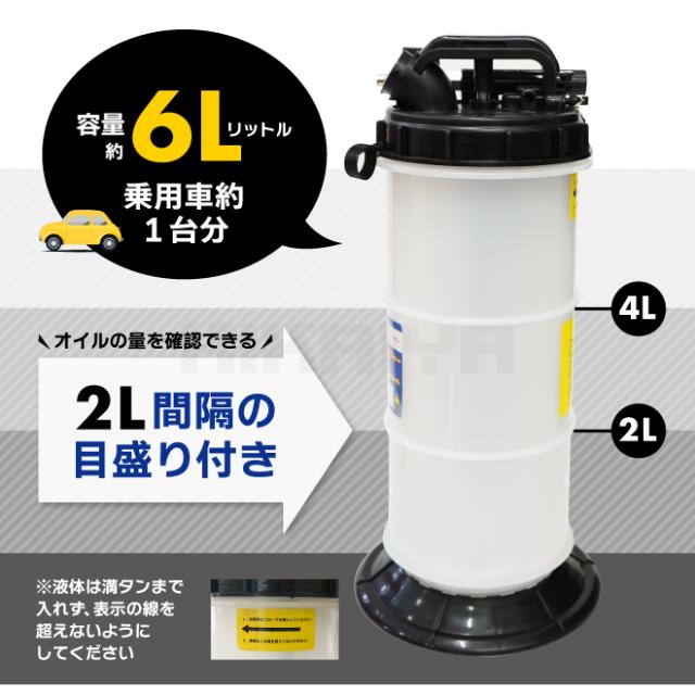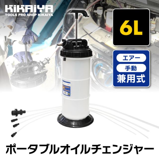 オイルチェンジャー エンジンオイル交換 6リットル 手動 エアー 兼用式 ポータブル 乗用車 バイク 水槽 KIKAIYA