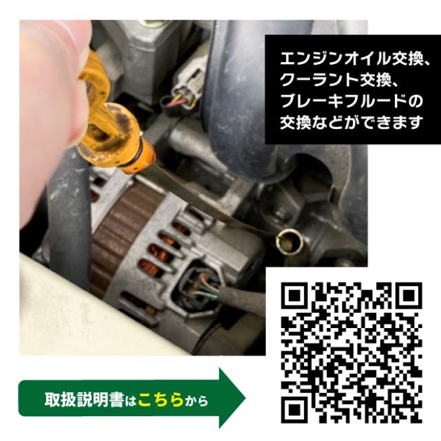 エンジンオイル交換に!エアーも手動も使える兼用式 ●エアーでも手動でも使える、便利な兼用式 ●2リットルきざみの目盛付でオイル量を確認できます ●エンジンオイルやATF、ブレーキフルードの交換や水を吸い上げる事も可能です ●軽量コンパクトで持ち運びも容易です ●エアーの場合、素早く抽出ができます ●手動の場合、エアーや電気の無い所や出張作業時にもご使用いただけます ●マリンエンジン、ビリッジポンプなど使い方さまざまです ●本商品はすべての車種には対応できません ●オイルレベルパイプに吸い込みチューブが入らない車種もございます ●オイルを抜き取る前にはエンジンを暖機してオイルを暖めてからおこなって下さい ●本商品はフロート機能がありませんので、液体は満タンまで入れず 本体側面の線を超えないようにしてください 品番:PAT-6 |