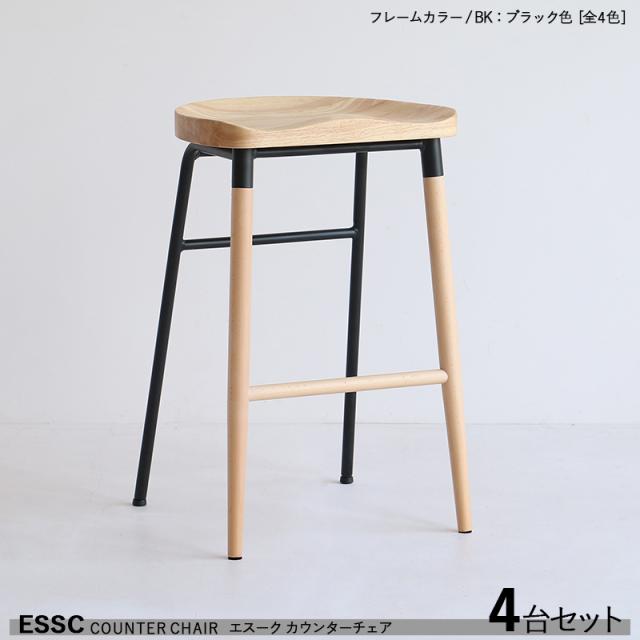 ESSC エスーク カウンターチェア ハイチェア【4台セット】 ブラック色フレーム 天然木無垢材チェア 全4色 バーチェア バー 業務用にも 北欧調デザイン