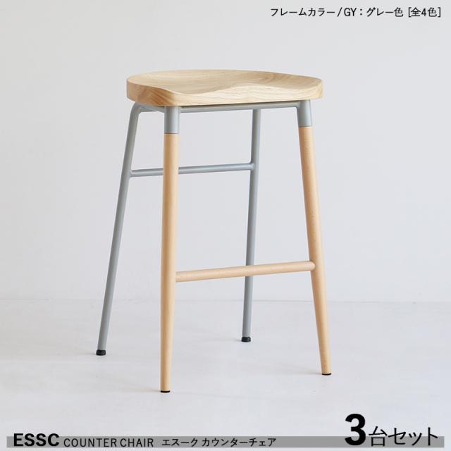 ESSC エスーク カウンターチェア ハイチェア【3台セット】 グレー色フレーム 天然木無垢材チェア 全4色 バーチェア バー コントラクトにも