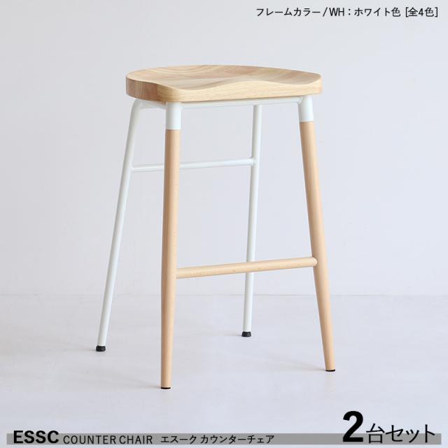 ESSC エスーク カウンターチェア ハイチェア【2台セット】 ホワイト色フレーム 天然木無垢材チェア 全4色 バーチェア バー コントラクトにも