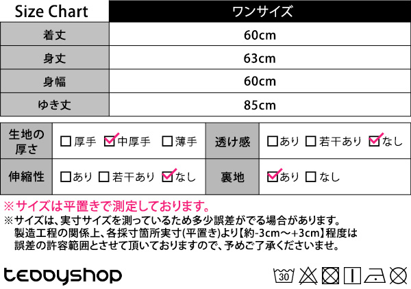 製造工程の関係上、各採寸箇所実寸(平置き)より【約-3cm〜+3cm】程度は