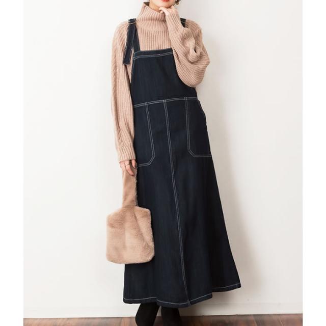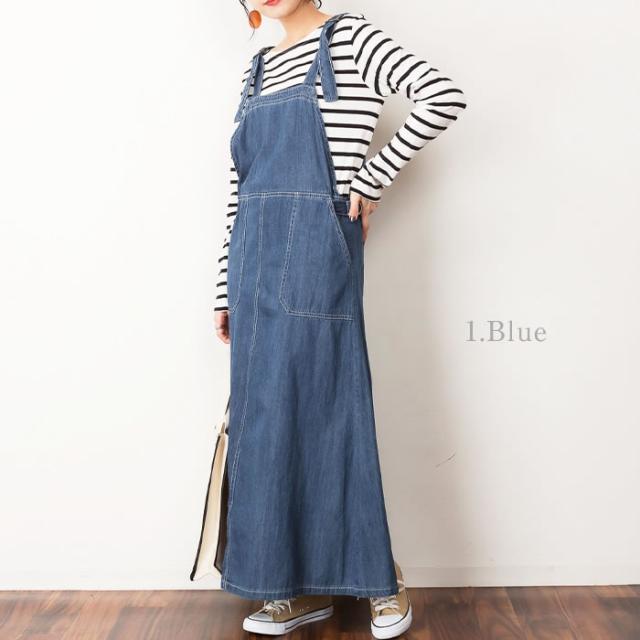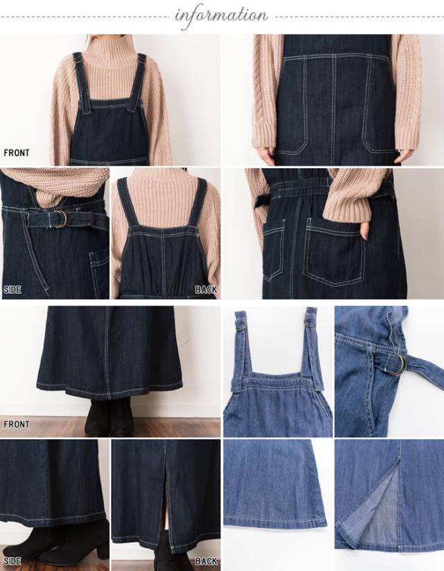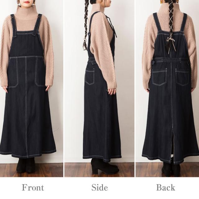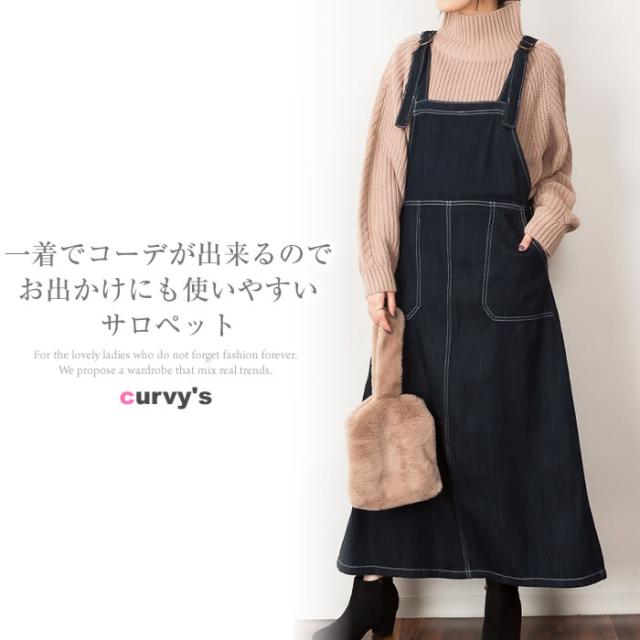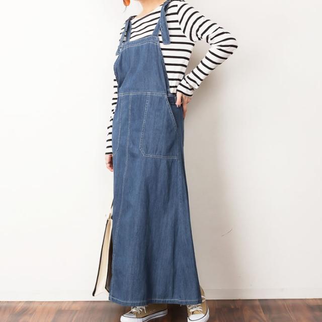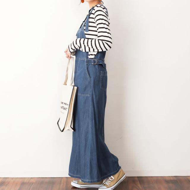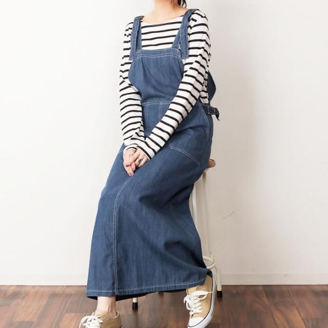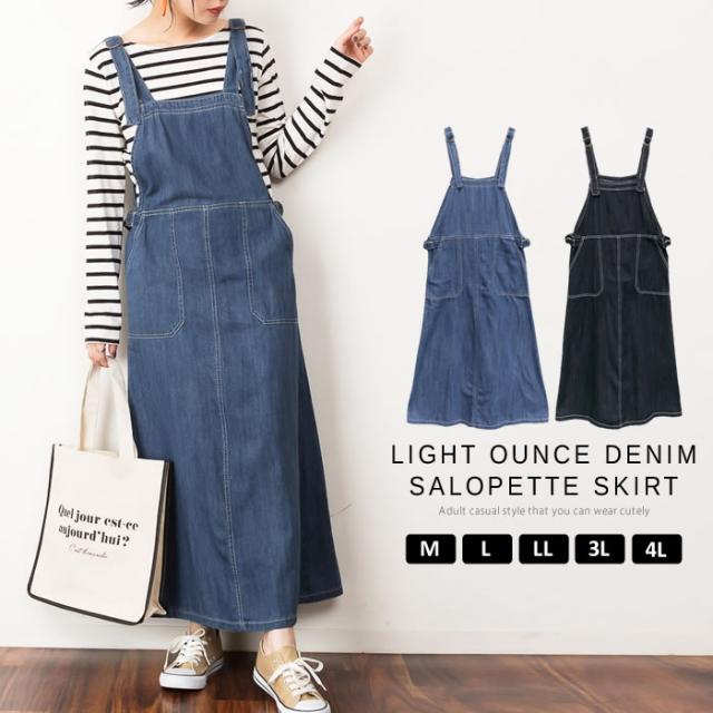 デニム サロペット スカート ロング 宅配便配送 透けない カジュアル シンプル かわいい おしゃれ 5営業日以内入荷 大きいサイズ レディース M L LL 3L 4LLARU ラルー ライトオンスデニムサロペットスカート
