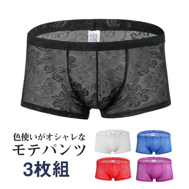 3枚セット ボクサーパンツ ボクサーブリーフ メンズ 下着 ナイロン レース シースルー 通気性良い 快適 総レース セクシー セ