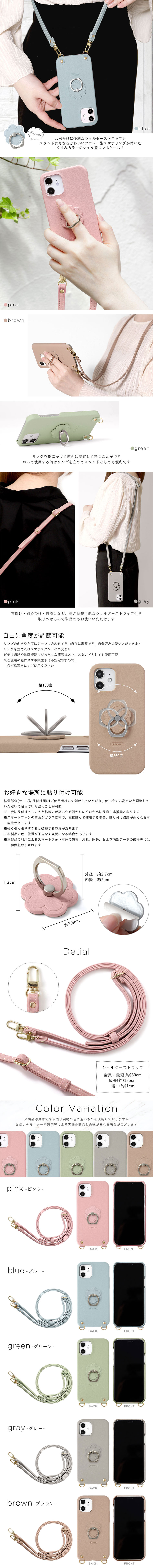 ■落下防止に便利なスマホリングと長さ調整が出来るショルダーストラップ付き。
