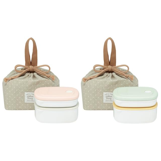 持ち運びに便利な巾着袋と2種類の容器のランチセット
