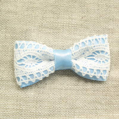 サテンテープとレースの結びリボン、プチモチーフです♪ベーシックな帯付き蝶タイリボンです。