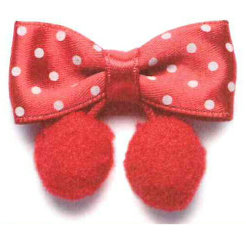 水玉ドットのサテンにボンボンの付いた結びリボン、プチモチーフです♪ベーシックな蝶タイリボンです。