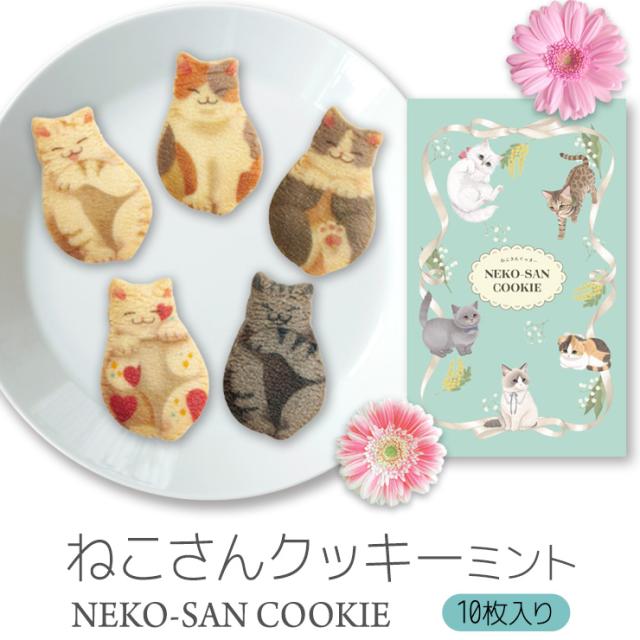 猫 お菓子 ねこさんクッキー ( 10枚入 ) ミント 猫 ねこ ネコ Cat キャット 三毛猫 ハチワレ 茶縞 黒縞 クロネコ かわいい クッキー