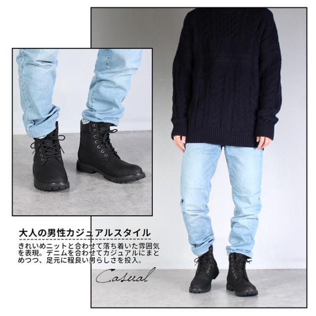 | アッパーは牛革※を使用したヌバックレザー仕様。アッパー全体に防水加工を施したので、本革ながらも普段のお出かけで必要十分な地面から4cm防水機能を搭載。ソールはタンクパターンを採用しグリップ力抜群。履き口部分はPUパッドを用い足首に優しくフィットし柔らかな履き心地。トレンド感のあるカーゴパンツやスウェットパンツ合わせの王道ストリートスタイルや、ニットやジャケット・デニムなどで大人の雰囲気を出したきれいめカジュアルコーデなど、お客様の雰囲気によって様々なスタイリングに対応可能。一足は必ず持っておきたい、お洒落男性には必要不可欠な一足です。冬だけではなくオールシーズン自分のファッションを支えてくれます。 ※一部合皮を使用している部分がございます。 |