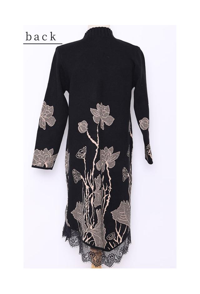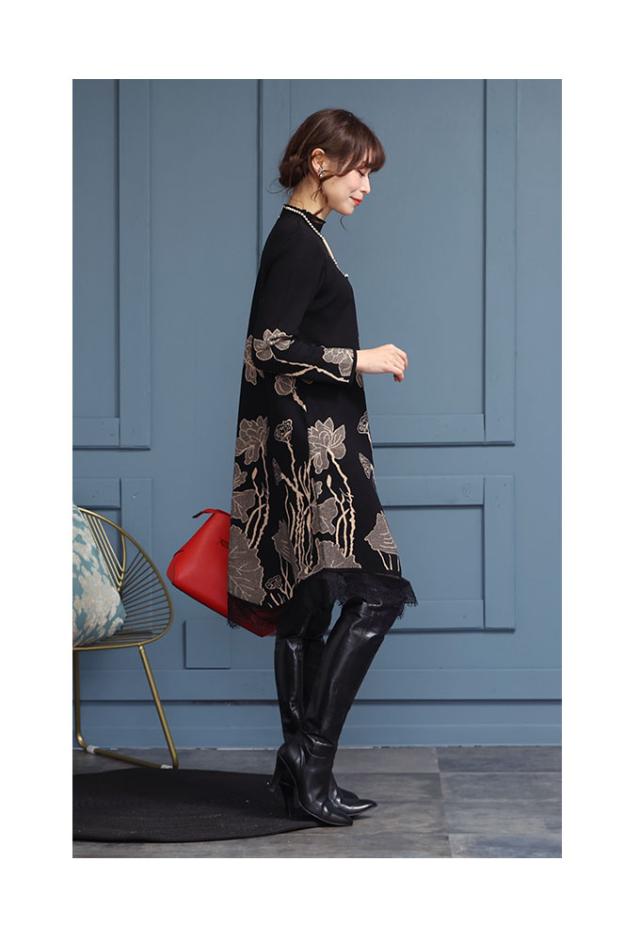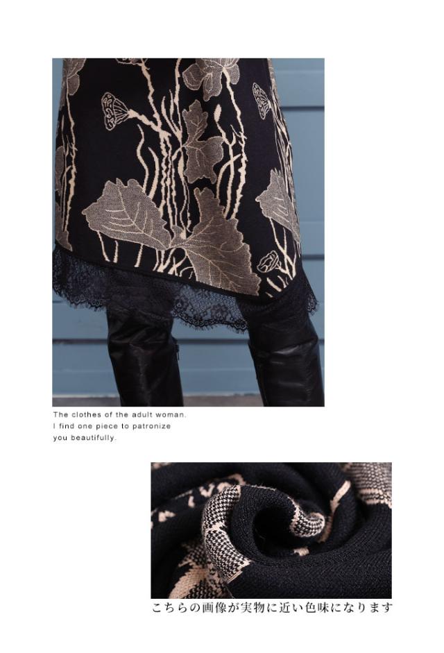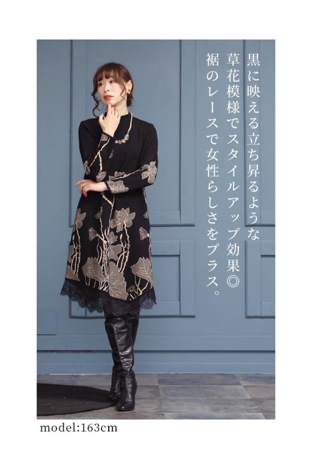 商品名: 草花立ち昇るレース付きニットワンピース