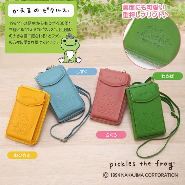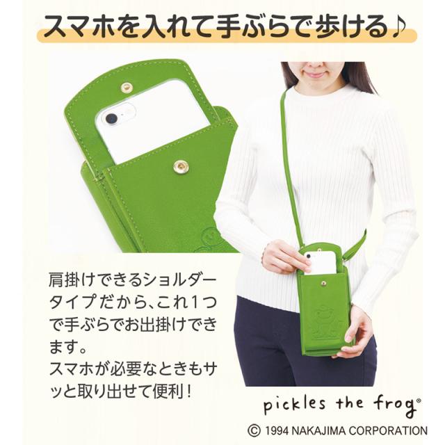 かえるのピクルス お財布機能付 スマホ ショルダー 正規品 │ 送料無料 かえる カエル ピクルス pickles the frog グッズ スマホ ショルダー 長財布 型押し 正規ライセンス品