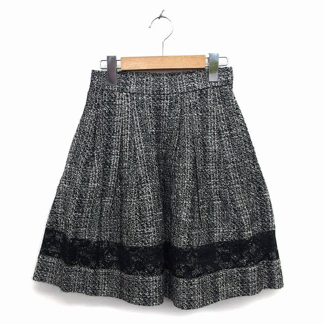 【中古】プライドグライド prideglide スカート フレア ひざ丈 ツイード レース ウール混 タック サイドジップ 34 黒