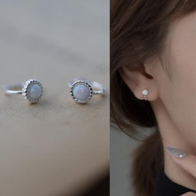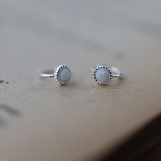 ピアス フープ 18k 小さめ アレルギー対応 オパール 1粒 一粒 仕事 プレゼント
