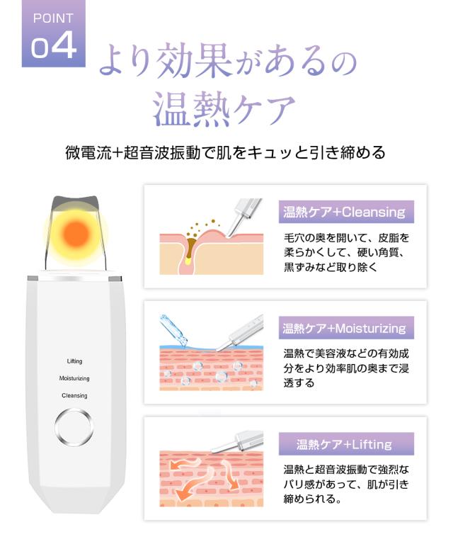 素肌と美容液を温め、肌の奥に押し込みしやすい。温熱ケアで汚れなど簡単に取るだけではなく、美容成分もお肌のすみずみまでに押し込みしやすくなります。