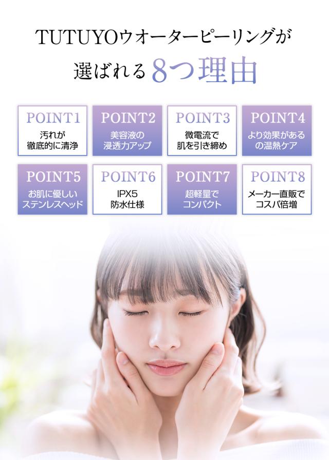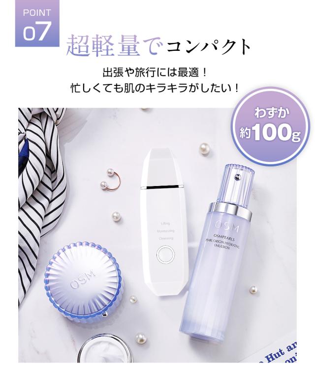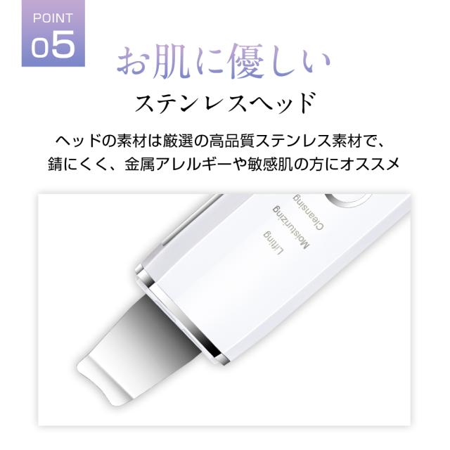 超音波振動とマイナスイオン導入により、美容液の有効成分をお肌の奥深くまで浸透させて、保湿、ハリのある肌へ導きます。