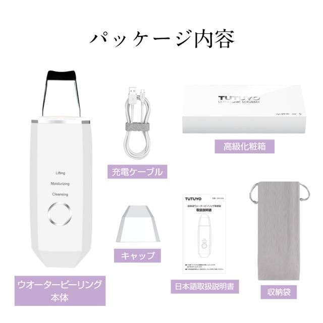 ウォーターピーリング 美顔器×1、専用収納袋×1、日本語取扱説明書×1、充電ケーブル×1