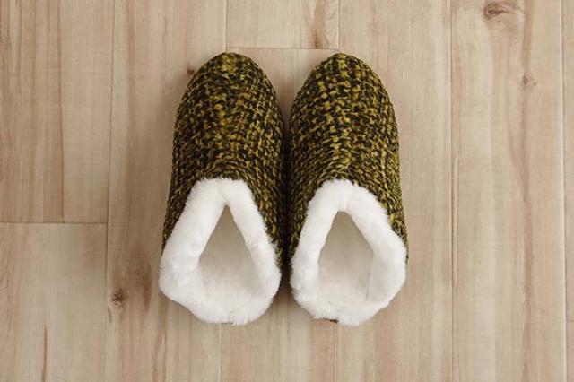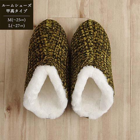 ルームシューズ ノート スリッパ レディース グリーン Mサイズ 約25cmまで 甲高 履きやすい 室内 もこもこ あったか 秋冬 冷え性 かわいい おしゃれ