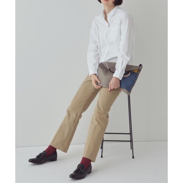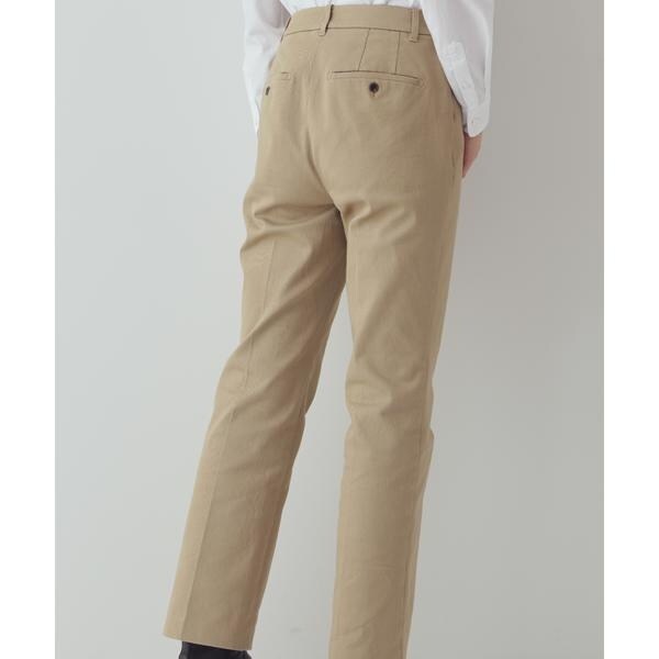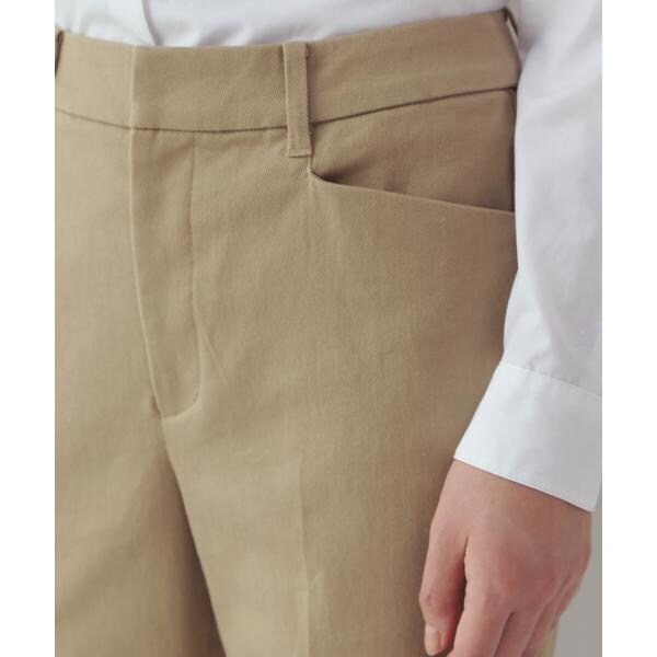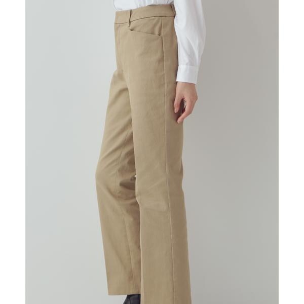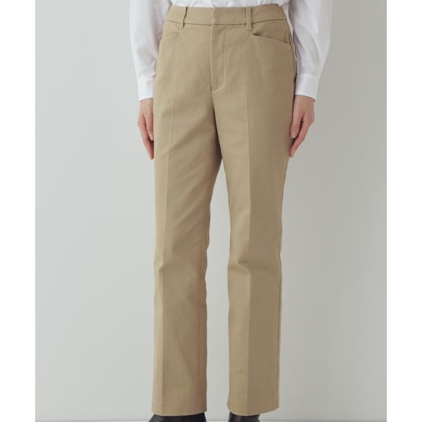 【デザインポイント】細身のフレアシルエットにセンタープレスを入れてきれい目に仕上げてあります。タイト過ぎないシルエットが身体の線を拾わないのも嬉しいポイントです。