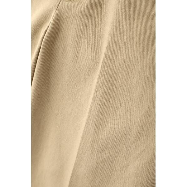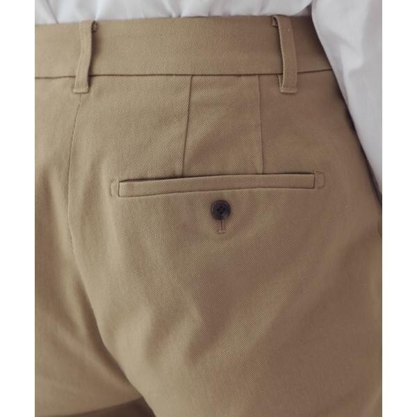 【素材のポイント】太番手の綿糸を高密度に打ち込むことでデニムライクな表情になるチノ素材を使用。