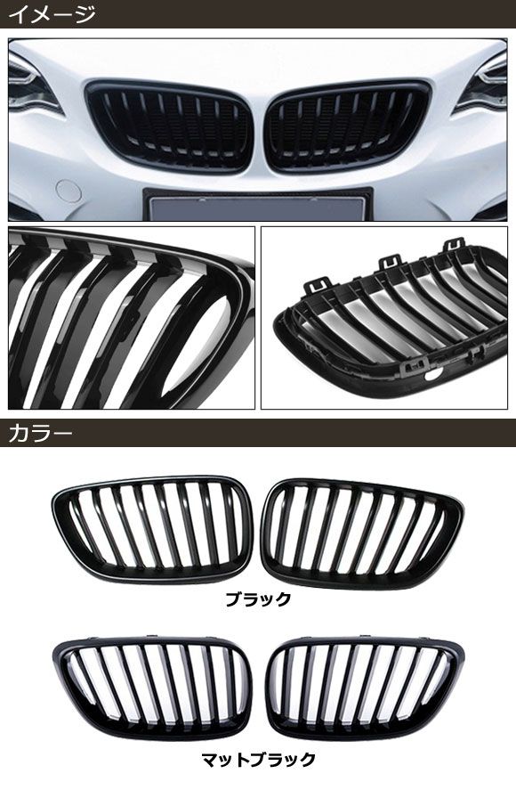 フロントグリルカバー BMW M2 F87 2016年〜 ブラック ABS製 シングルバー 入数:1セット(2個) AP-FG544-BK