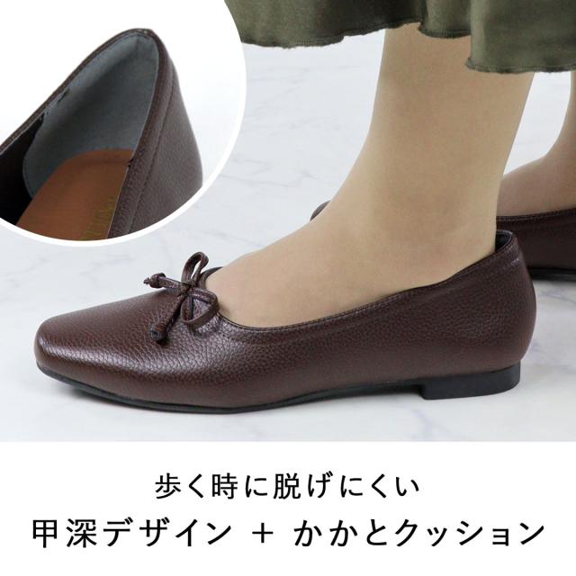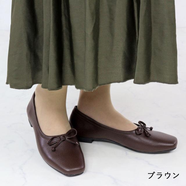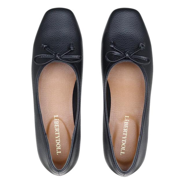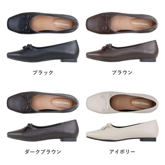 バレエシューズ レディース スクエアトゥ フラット 歩きやすい 甲深 リボン 合成皮革 1cmヒール No.1132 22.0cm〜25.0cm 黒 ブラック LiBERTYDOLL リバティードール ぺたんこ 楽ちん リボン 通勤 通学 かわいい カジュアル 脱げにくい