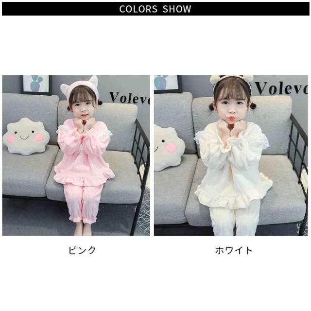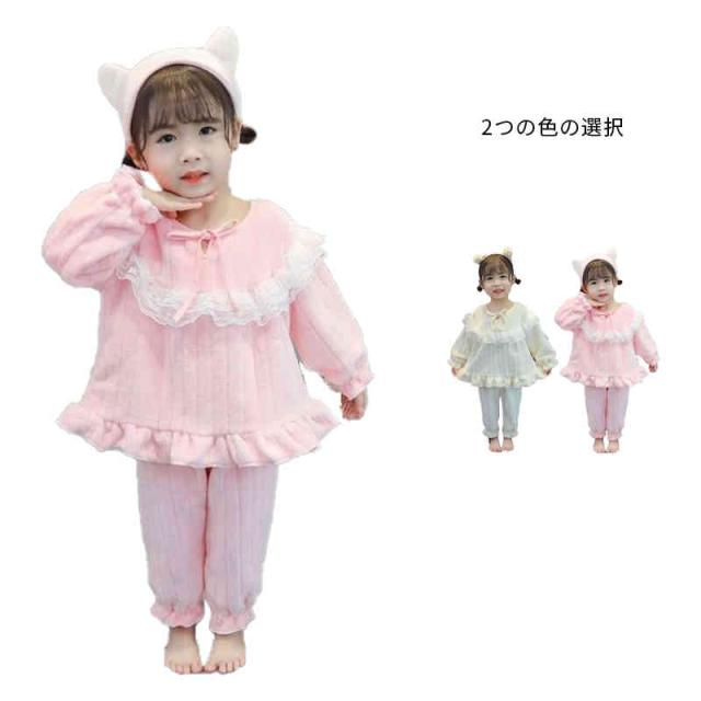 あったかパジャマ キッズ 秋冬 ルームパジャマ ルームウェア 上下セット 女の子 ベビー服 キッズパジャマ 子供パジャマ 長袖 寝間着 ナイトウェア ジュニア 可愛い 2点セット パジャマ フリルパジャマ ロングパンツ 送料無料