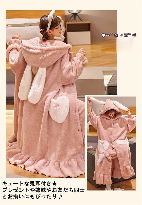 パジャマ レディース 冬 うさぎ耳付き 兎耳 ガウン バスローブ かわいい 長袖 ルームウェア 女子会 ナイトガウン 着る毛布 もこもこ 寝巻き 女性用 ふわふわ ふわもこ 前開き 裏起毛 可愛い 韓国 モコモコ 部屋着 プレゼント 暖かい 結婚祝い あったか フード付き ブルーB ピンク パープル dh379d3