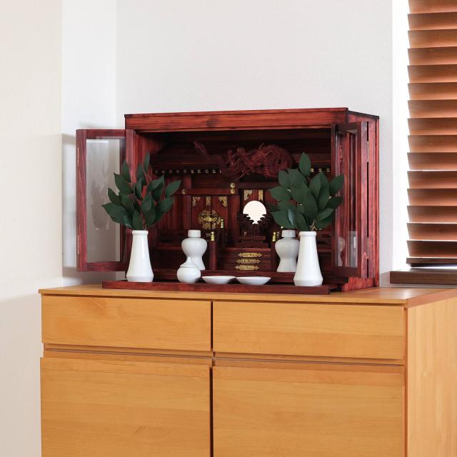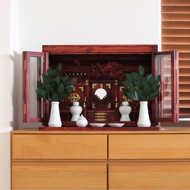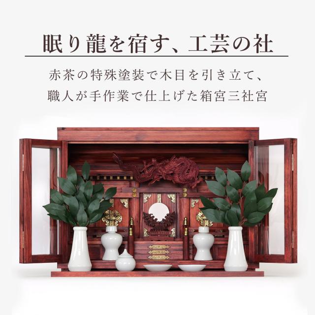 モダン神棚 セット 箱宮 三社 眠り龍の社 赤龍 白色 神具セット 神棚セット 限定 手塗り 家具調 国産 大型 20号 家具調モダン神棚