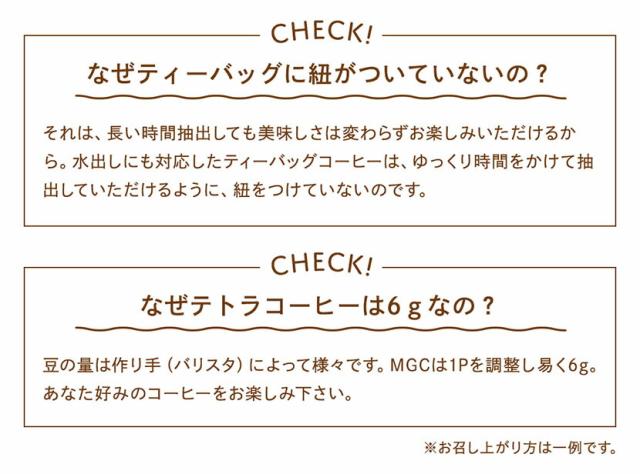 コーヒー 珈琲 MGCテトラコーヒー グァテマラSHB のコーヒー豆を使用 水出しも可能で水に入れるだけで本格的な コーヒーをお楽しみいただけます。ティーバッグ 型のコーヒー