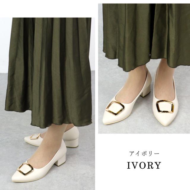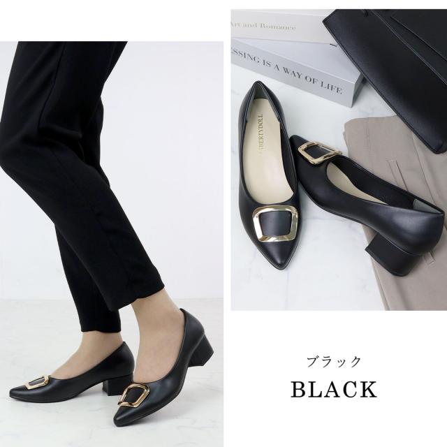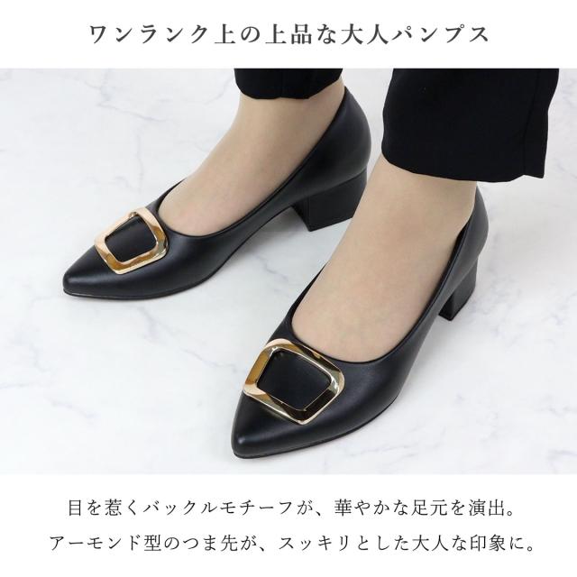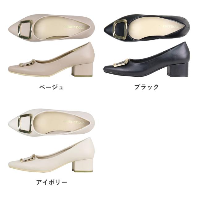 パンプス アーモンドトゥ 4cmヒール チャンキーヒール 歩きやすい クッション インソール 痛くなりにくい レザー 合成皮革 通勤 No.1166 22.0-25.0cm 黒 ブラック 太ヒール 太めヒール 安定感 バックル 上品 ビジカジ 白 ホワイト ミドルヒール LiBERTYDOLL リバティードール