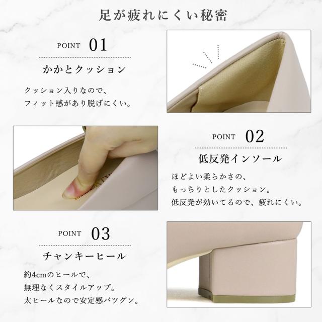 安定感のある約4cmの太めヒールは、普段ヒールを履く方にも、ヒールが苦手な方にもおすすめです。