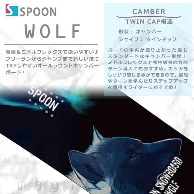 スノーボード 板 メンズ 2点 セット SPOON スプーン WOLF スノボー 初心者 簡単 キャンバー ボード ブランド グラトリ 黒 ブラック かっこいい お洒落 青 ブルー