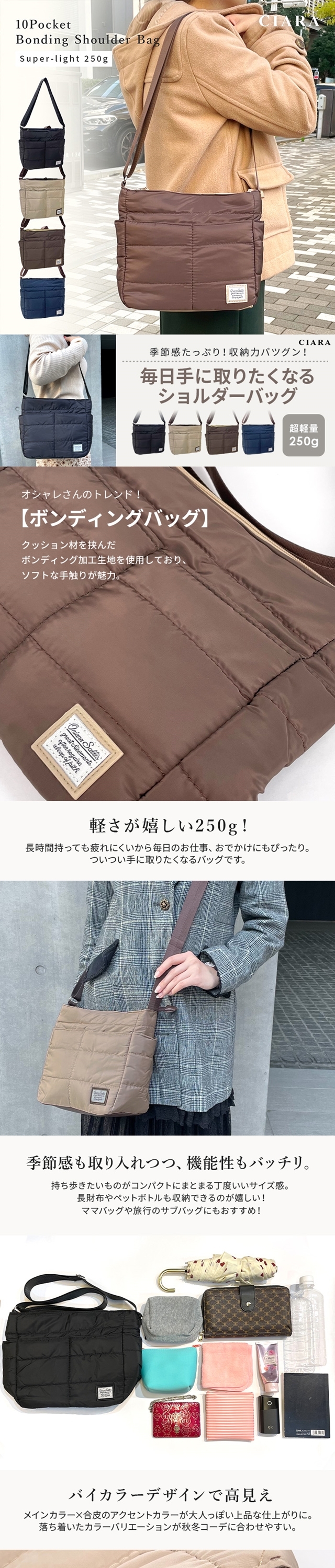 バッグ レディース デイバッグ ショルダーバッグ クロスボディバッグ クロス掛け キルティング ボンディング ボンディングバッグ キルト 冬バッグ 肩掛け 上品 高見え ママ ショルダー ママバッグ マザーズバッグ 旅行バッグ シンプル メンズ ユニセックス 大容量 ファスナー付き チャック付き 多収納 軽い 軽量 収納 実用性 丈夫 小さめ 大人 女性 たっぷり 使いやすい 多機能 高性能 ポケット ファスナー 旅行 ビジネス デイリー 仕事 オフィス 通勤 通学 出張 夏バッグ トラベル 持ち歩き 女子 大学生 高校生 OL 会社員 20代 30代 40代 50代 60代 70代 80代 かわいい 可愛い おしゃれ きれいめ カジュアル 秋 冬 春 夏 バレンタインデー ホワイトデー お返し 母の日 お婆ちゃん クリスマス 誕生日 新生活 カジュアルバッグ 2way 2ウェイ レジャー 自転車通勤 旅行用 速乾 贈り物 プレゼント プチギフト ギフト 福袋 セール お得 ポイント消化 送料無料 新作 CIARAポーチ雑貨屋 シアラ OEM 大量注文 ネスリーフ 2026 遅れてごめんね